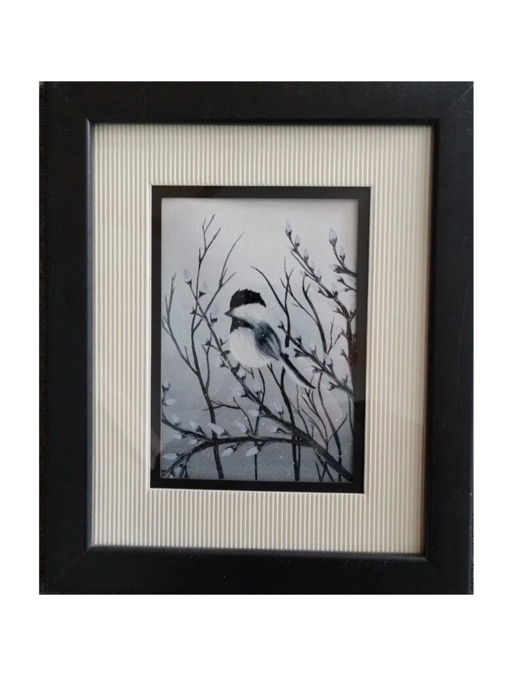 Paintings span across watercolor, acrylic, and oil, with subjects that range from animals and botanicals to abstract and imaginative scenes. My wood carvings highlight the textures and spirit of the natural world, while my cross-stitch and candle work add cozy, handcrafted charm.